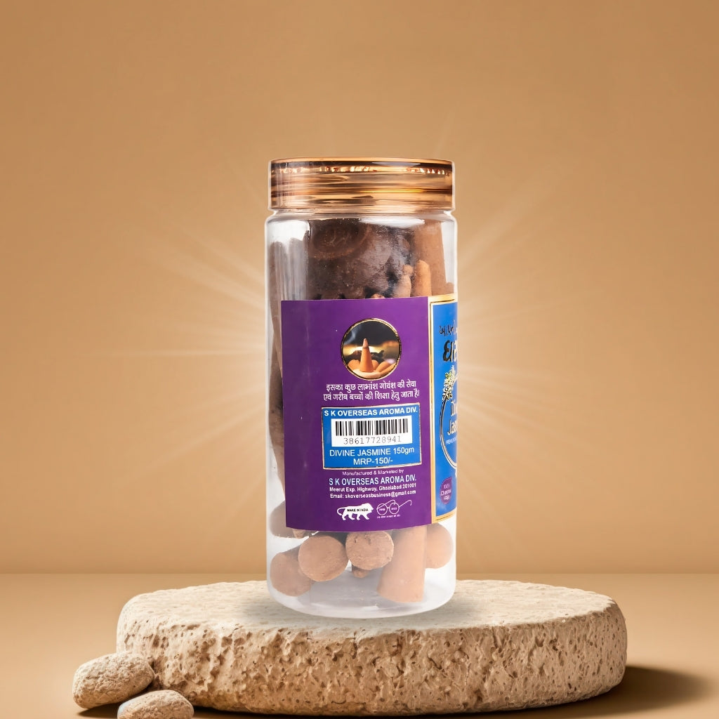 Each cone is hand-rolled with care, ensuring a slow and even burn that releases a divine jasmine aroma. The pure, floral fragrance lingers long after use, creating an atmosphere of devotion, peace, and positivity.