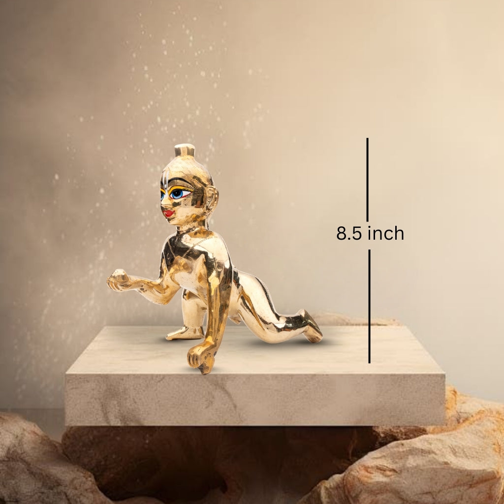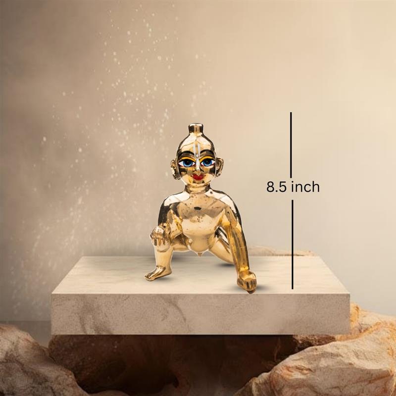 Expertly handcrafted, this idol captures the divine charm and innocence of Laddu Gopal. The fine detailing, expressive blue eyes, and polished finish make it a radiant centerpiece, perfect for devotion, meditation, and home décor.