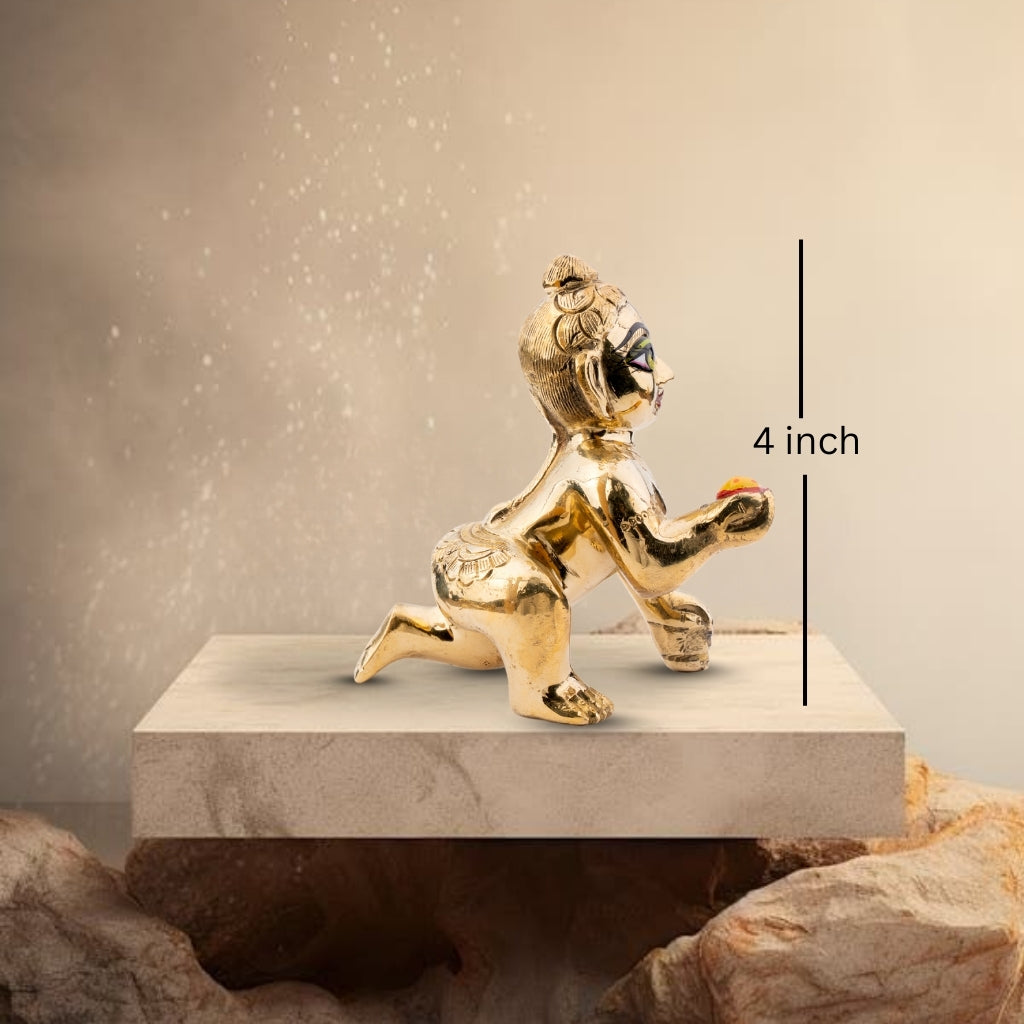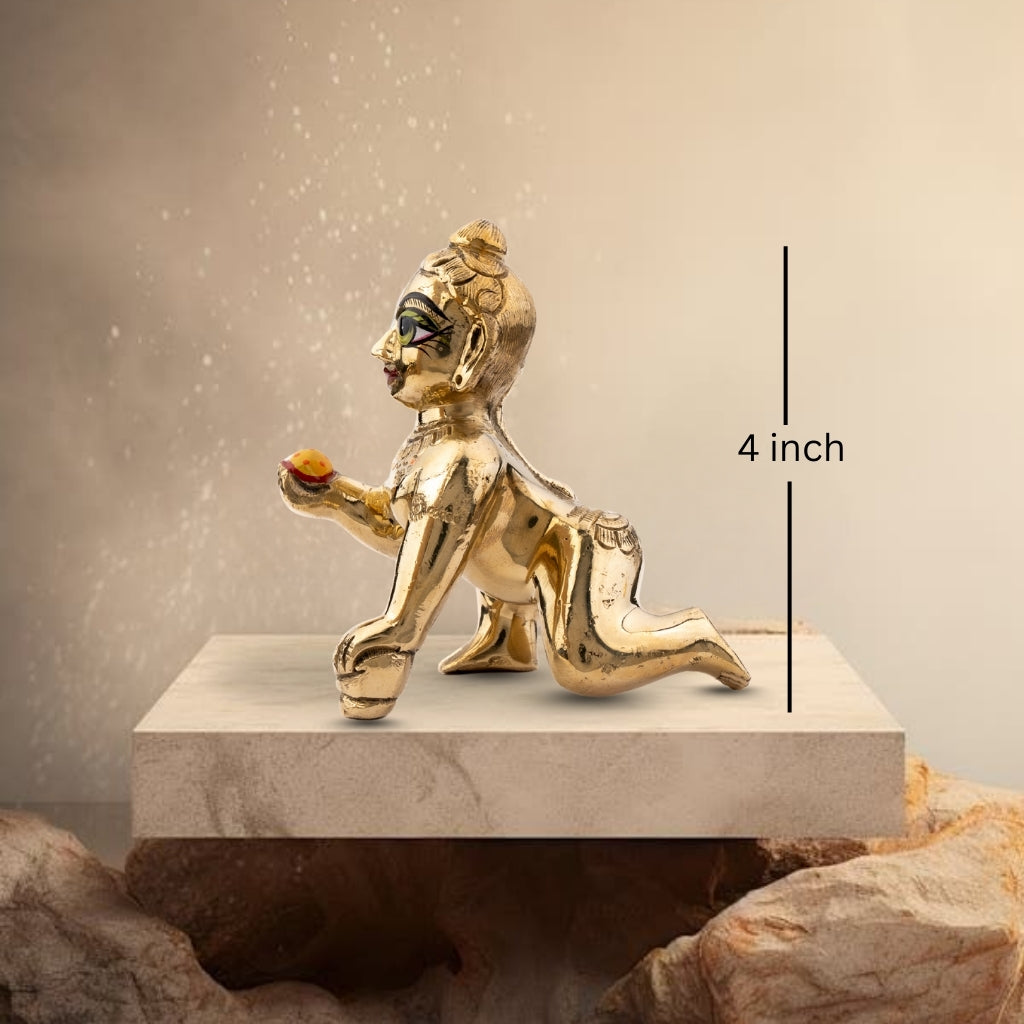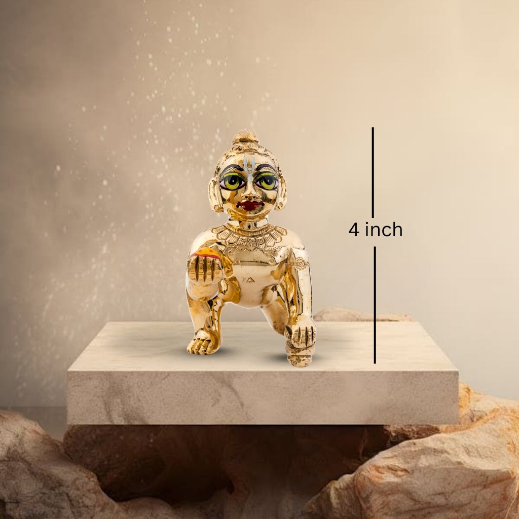 Carefully handcrafted, the idol captures the innocence and charm of Laddu Gopal, with intricate detailing on the face, posture, and adornments. The captivating green eyes and fine finish make it a divine centerpiece for devotion and décor