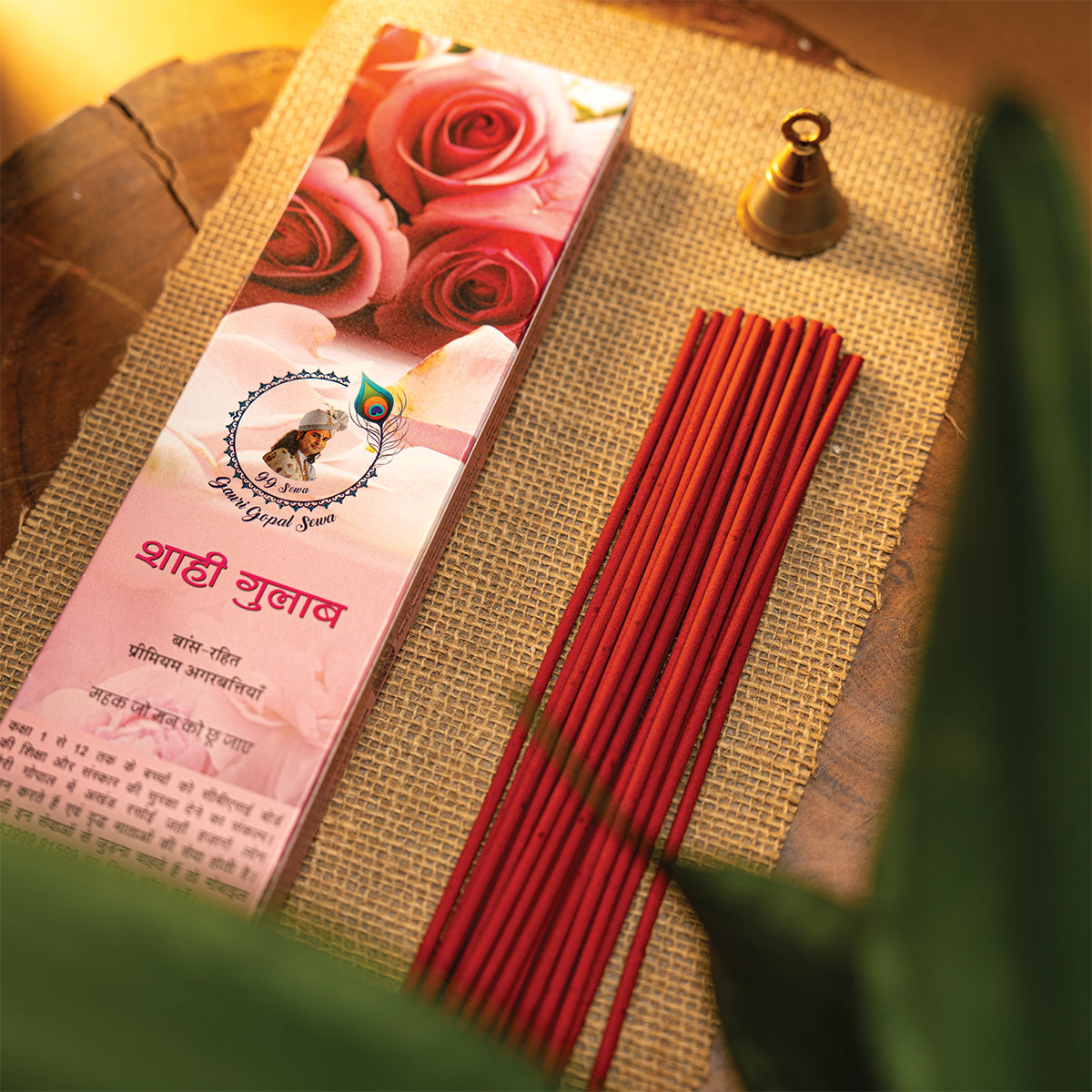 Experience the timeless aroma of Gauri Gopal’s Shahi Gulab, a fragrance that captures the purity of devotion and the elegance of royalty. Inspired by the divine essence of the sacred rose, Shahi Gulab fills every corner with a soft, soothing, and uplifting energy a fragrance that touches the soul and brings peace to the heart.