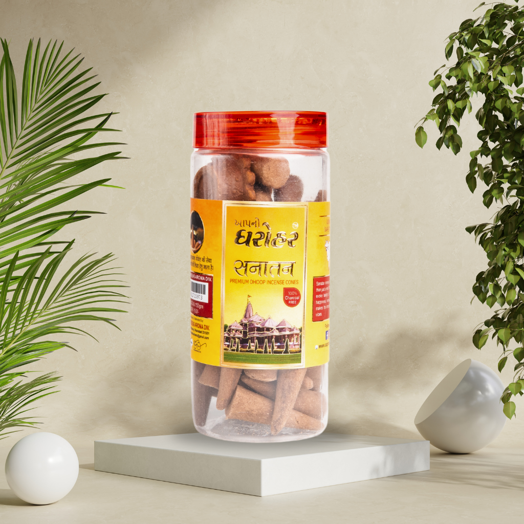 Each piece of Snatan Premium Dhoop is carefully prepared to ensure an even burn and a captivating, divine aroma. Its natural fragrance creates a tranquil atmosphere, making every meditation, prayer, or puja session deeply uplifting.